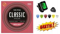 Zestaw Struny Gitary Klasycznej + Korbka + Tuner Stroik + Pudełko +3 Kostki