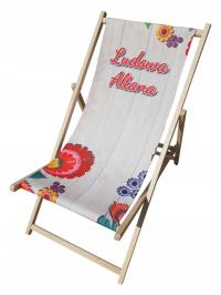 LEŻAK OGRODOWY DREWNIANY Z NADRUKIEM SKŁADANY MATERIAŁ WYTRZYMAŁY + PROJEKT