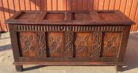 Старый резной дубовый сундук, инкрустация