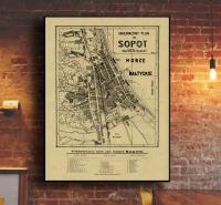 Старый план Гданьск Сопот Danzig Zoppot 1930r90x90cm