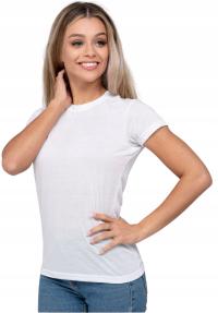DAMSKA KOSZULKA T-SHIRT W SEREK BAWEŁNIANA KLASYCZNA BASIC MODNA BIAŁA