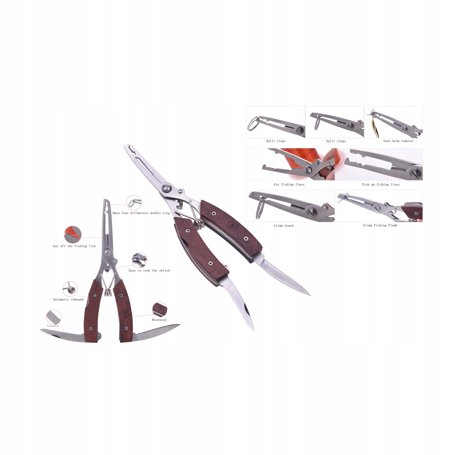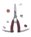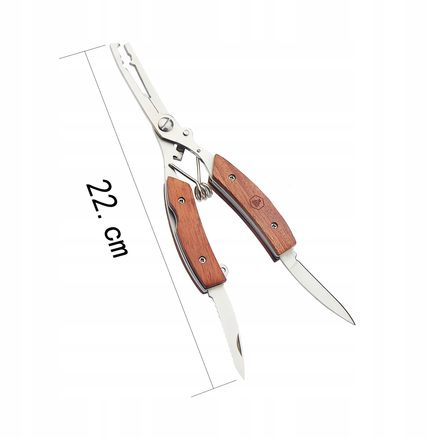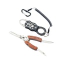 Рыболовный набор состоит из современных плоскогубцы с двумя складными ножами, а также держатель для рыбы. Оба элемента были изготовлены из из нержавеющей стали, что обеспечивает высокую прочность и длительный срок службы.
