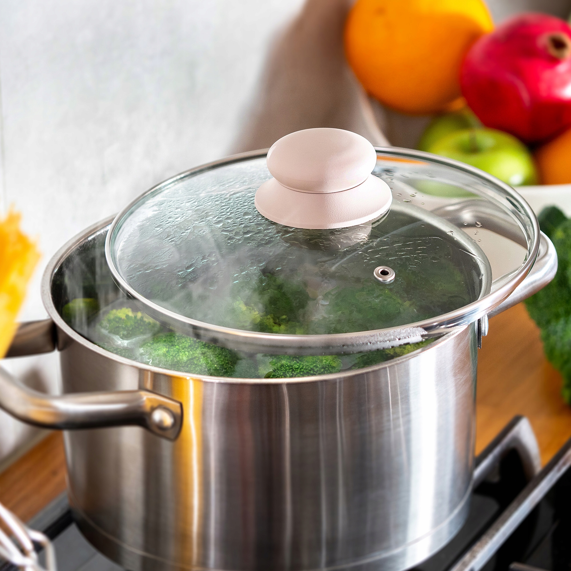 Pokrywa żaroodporna została wyposażona w mały otwór, przez który ucieka para, zabezpieczając zawartość garnka czy patelni przed przegotowaniem i przelaniem. Dzięki temu gotowanie trwa krócej, a przygotowywane dania nie wiąże się z utratą wilgoci.