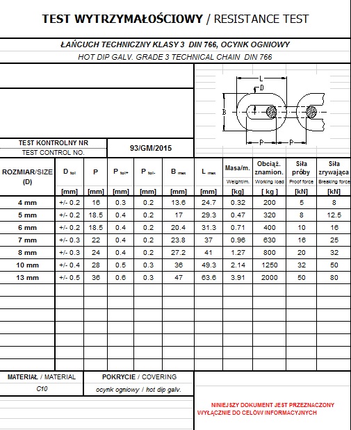 ŁAŃCUCH TECHNICZNY 13mm KL. 3 DIN 766 - WIĄZKA 30m