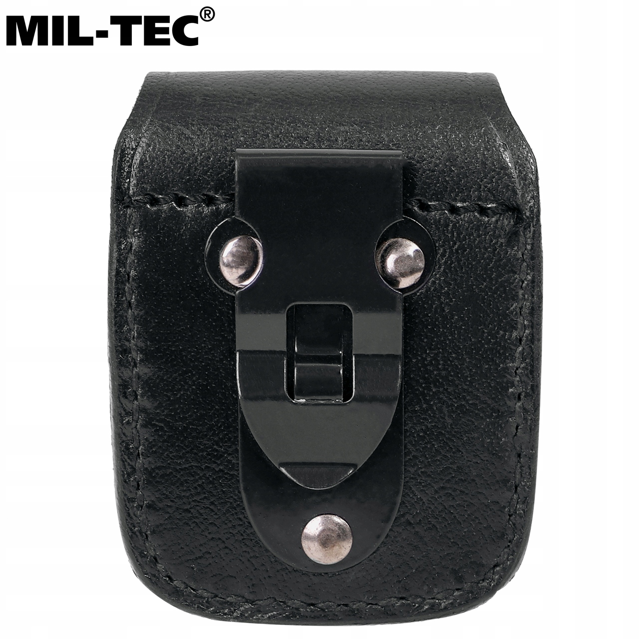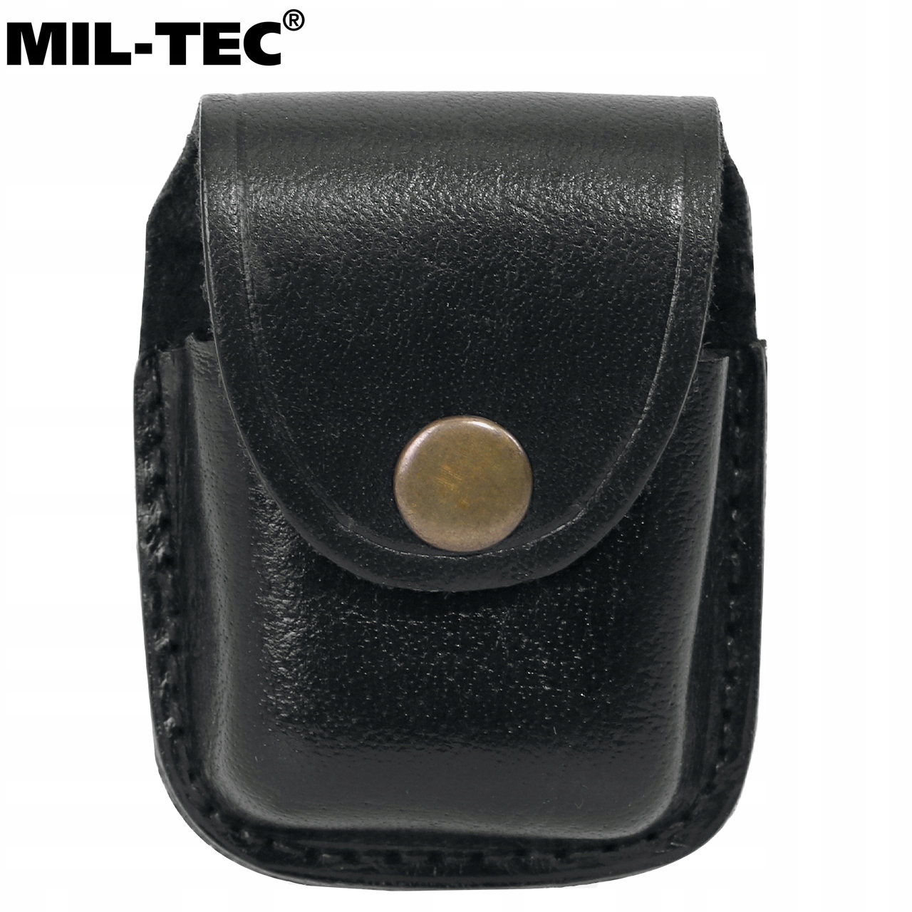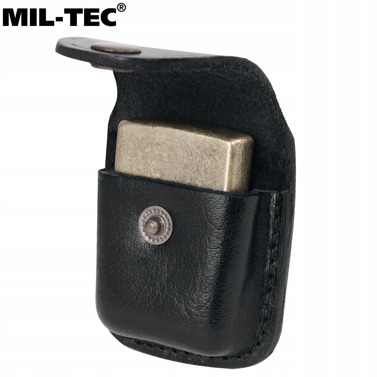 Etui skórzane niemieckiej marki Mil-Tec wykonane z czarnej, grubej skóry, przeznaczone jest do przechowywania klasycznych zapalniczek benzynowych typu Zippo.