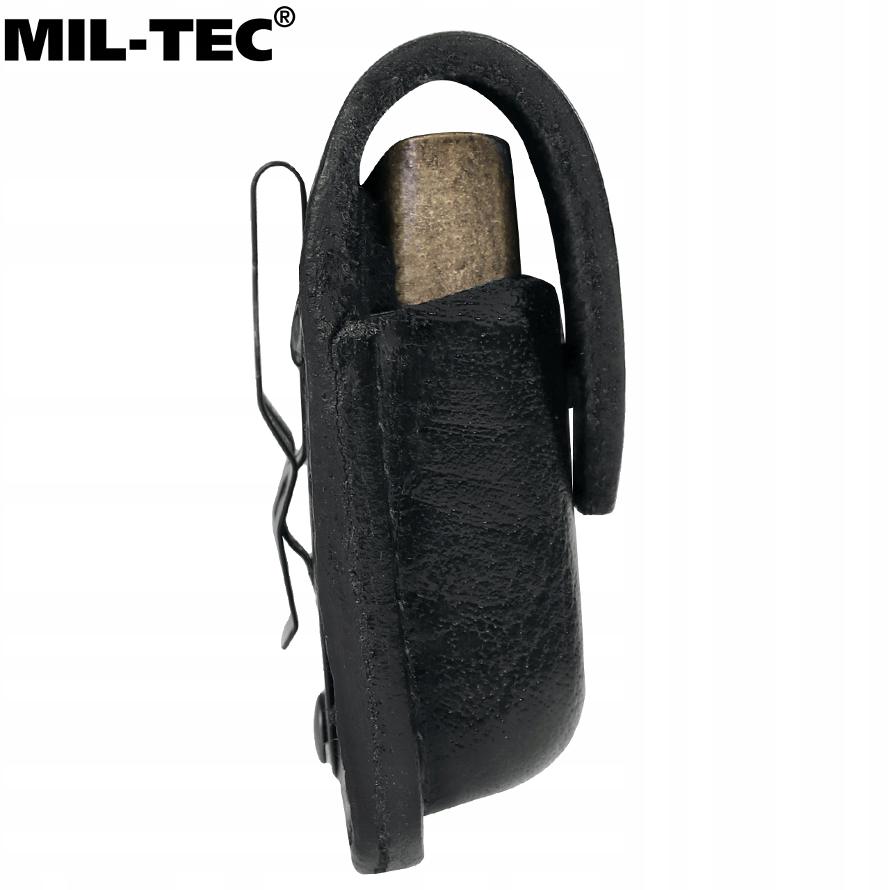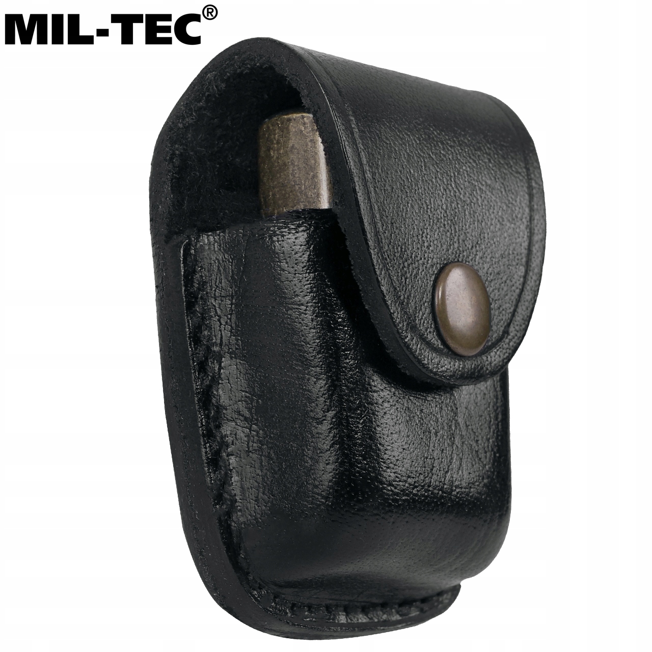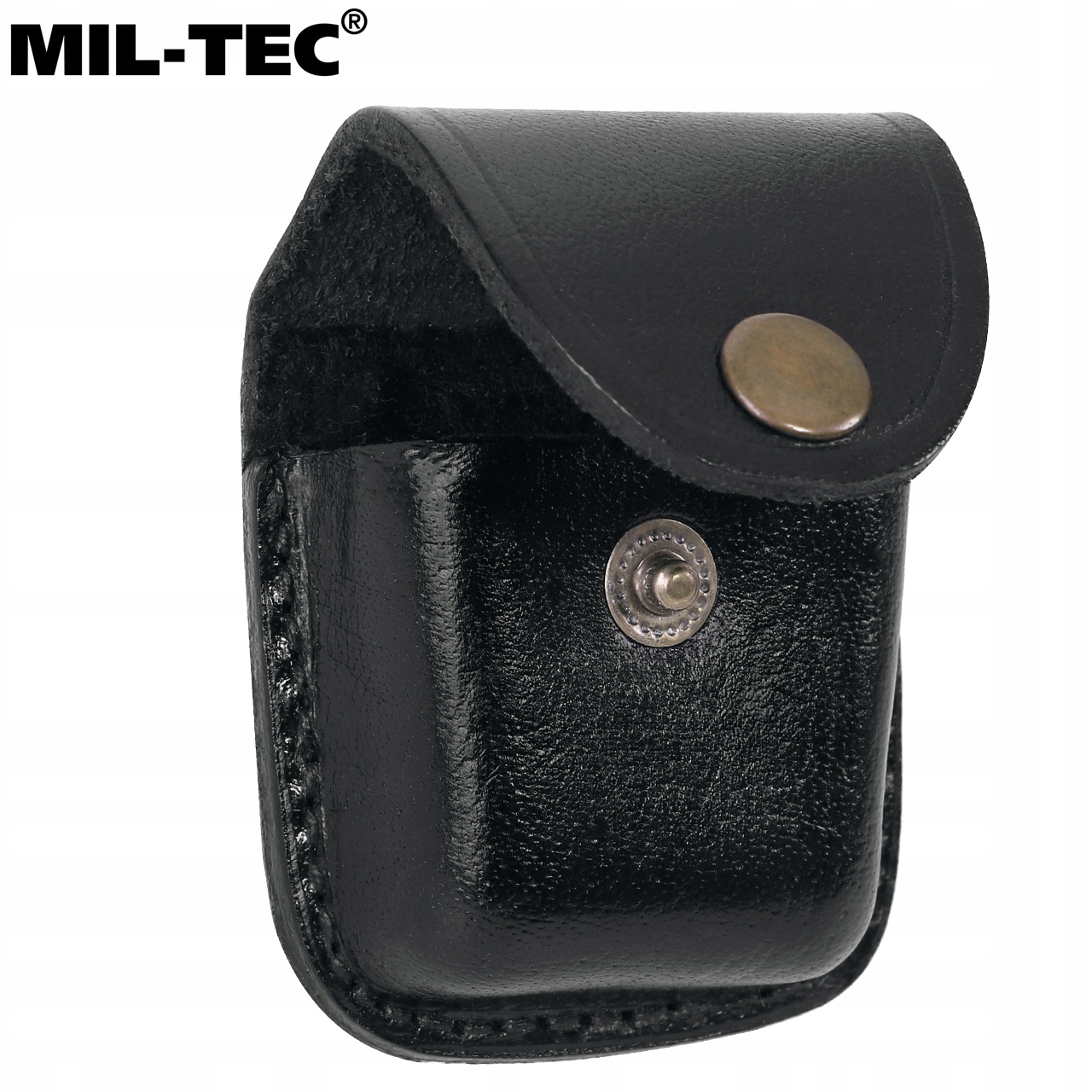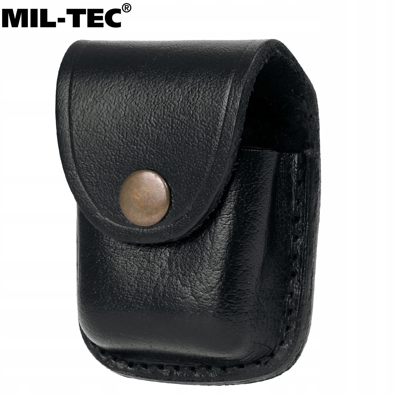 Etui skórzane niemieckiej marki Mil-Tec wykonane z czarnej, grubej skóry, przeznaczone jest do przechowywania klasycznych zapalniczek benzynowych typu Zippo.