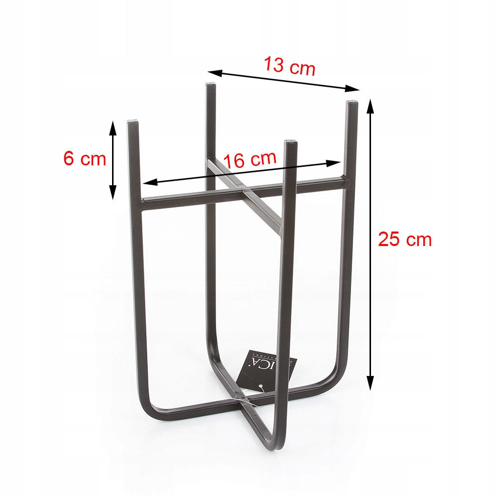 Wykonany z lakierowanego na czarno metalu.