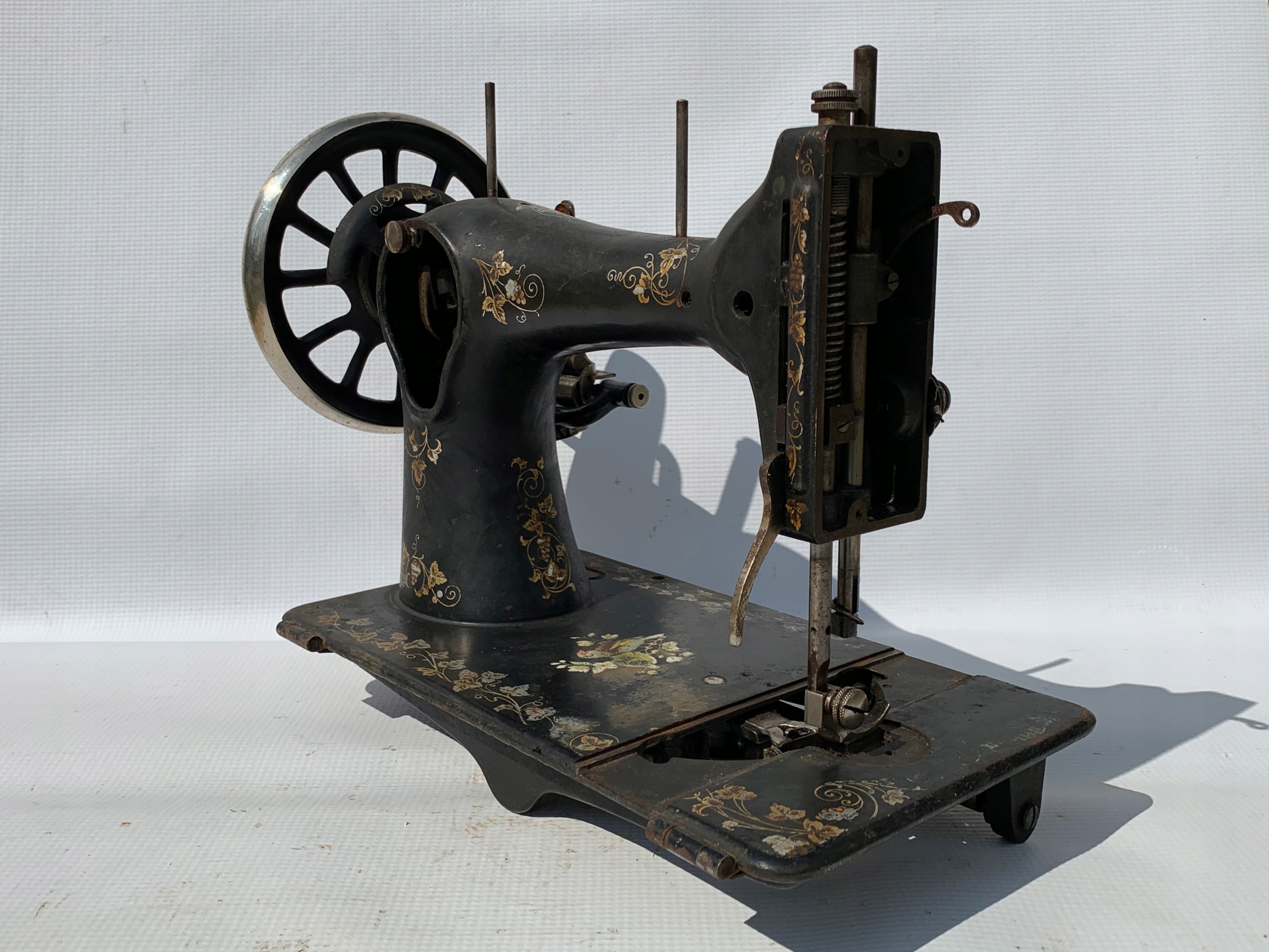 Предметом продажи является старая швейная машина WINSRLMANN. На табличке номинальная надпись WINSELMANN NAHMASCHINE DEUTSCHE INDUSTRIE. Очень хороший узор с наклейкой с цветочные мотивы и птицы. Машина выглядит исправной-колесо вращается, игла работает. Недостатки как на фотографиях. Если вы ищете что-то оригинальное, то аукцион предназначен именно для Тебя.