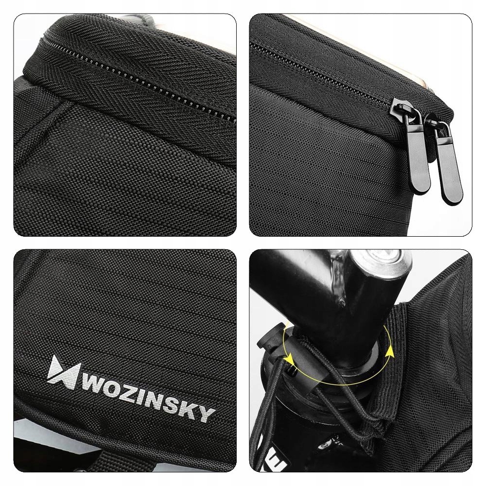 Chyba nawet amatorzy szybkiej jazdy zgodzą się, że mimo wszystko najważniejsze jest bezpieczeństwo. Zarówno Twoje, jak i Twojego sprzętu, na którym przecież znajdują się ważne numery telefonów, smsy od drugiej połówki czy wyjątkowe momenty Twojego życia w formie zdjęć czy filmów. Dlatego też solidne mocowanie torby to bardzo istotna kwestia, która w przypadku sakwy rowerowej Wozinsky nie została potraktowana po macoszemu. Akcesorium montuje się do ramy za pomocą 2 mocnych rzepów, a do tego, dla większej stabilności, przywiązuje się je do kierownicy z użyciem elastycznej gumowej linki.