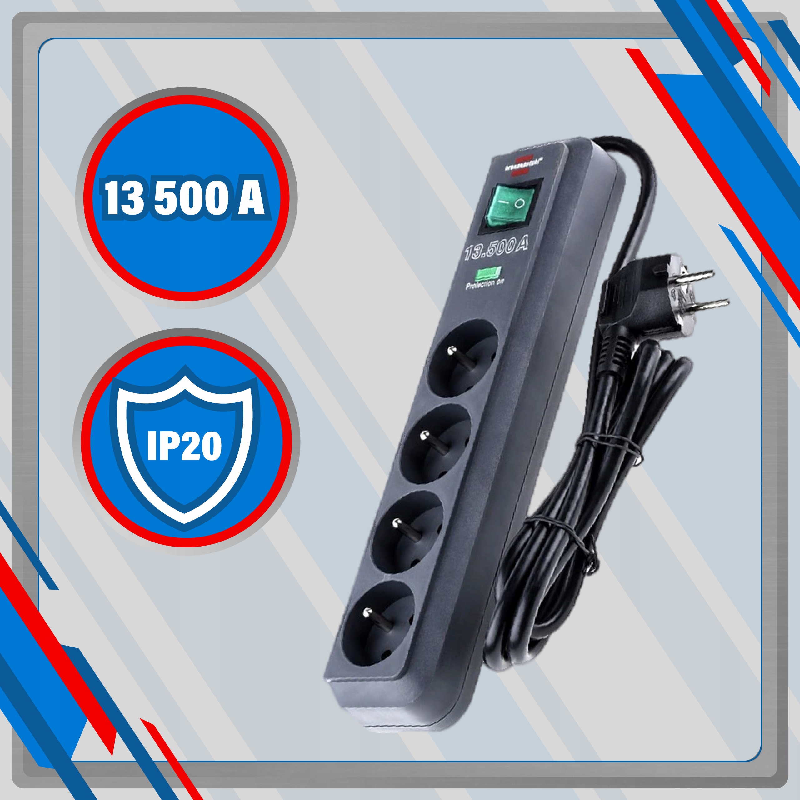 Силовая полоса была оснащен повышенной защитой от прикосновения. Он также имеет контрольную лампу функции, что позволяет убедиться, что он работает правильно.