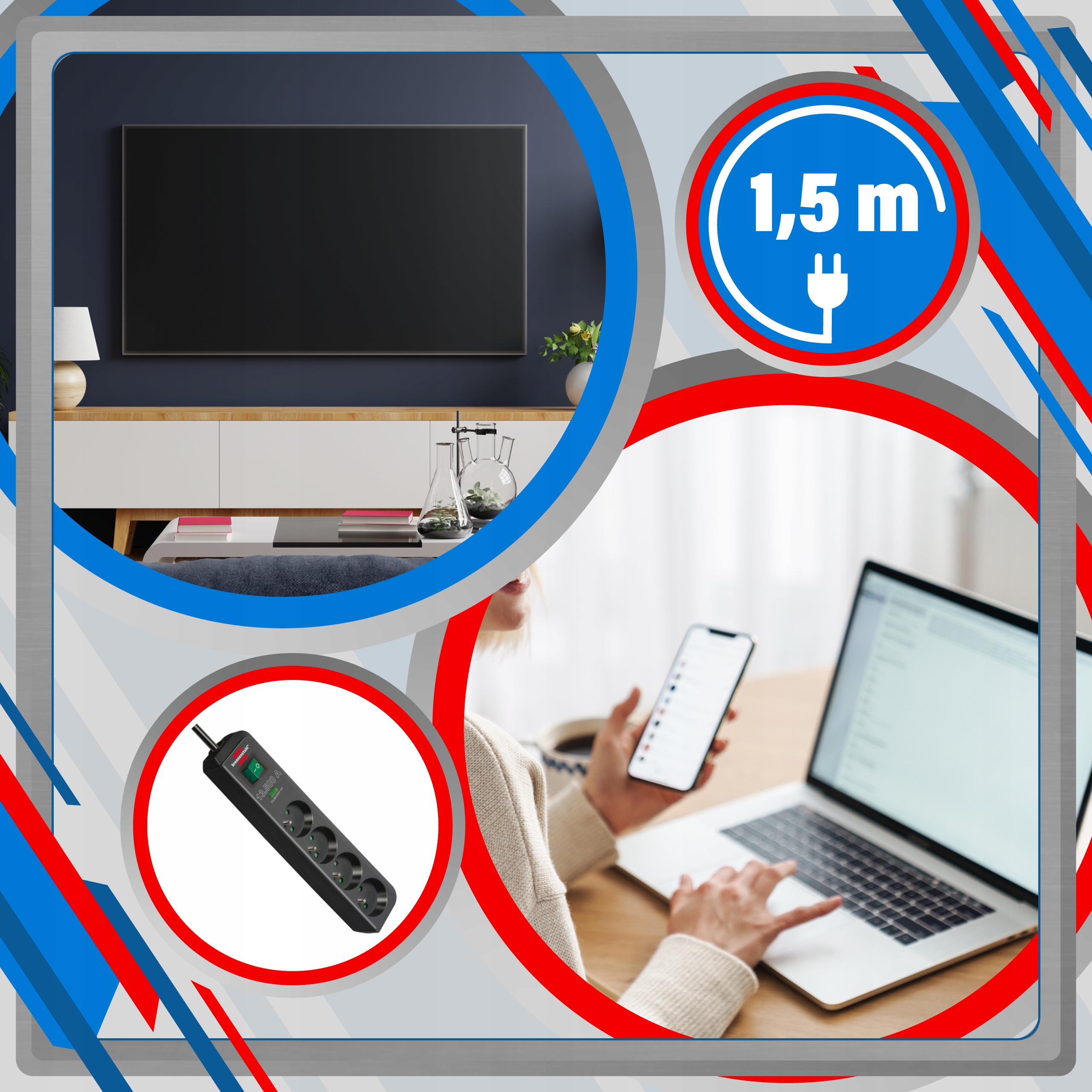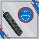 Предлагаемая полоса перенапряжения идеально подойдет для дома и офиса. Он был оснащен кабелем длиной 1,5 м и позволяет одновременно подключать до 4 устройств, например.: