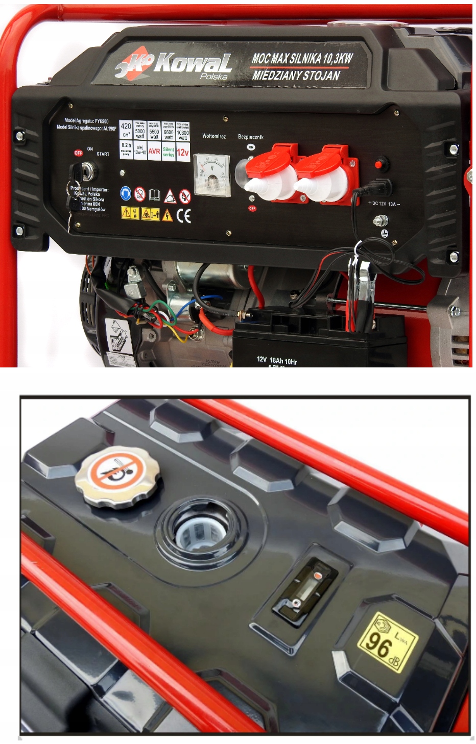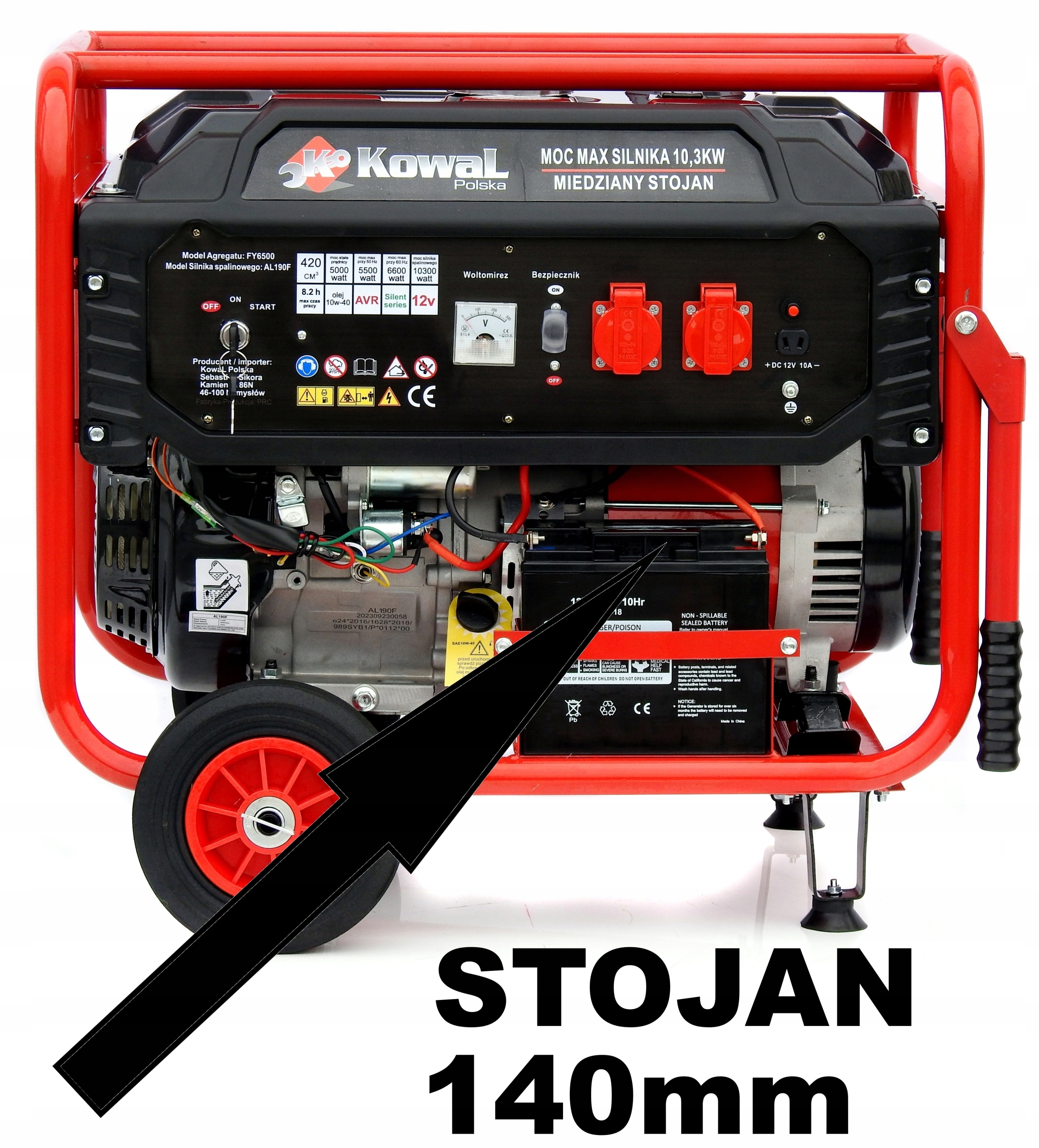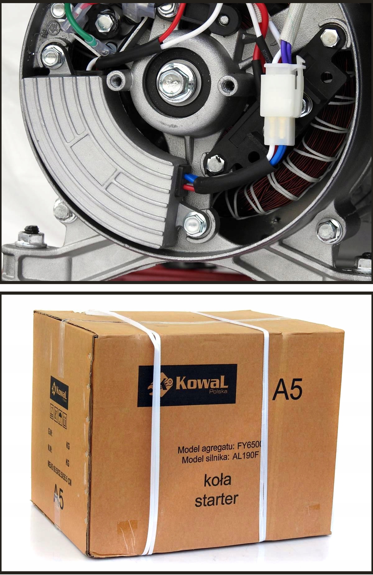 Stojan i wirnik stanowią blisko połowę wartości agregatu. Wiele firm posiada jedynie "miedziowane" uzwojenie na stojanie o szerokości wynoszącej 110-130mm. We wszystkich agregatach firmy KowaL o mocy silnika 10,3kW zastosowano stojan o długości wynoszącej aż 140mm. Stojan nawinięty w pełni miedzianym drutem.Miedziana prądnica współpracuje z bardzo popularnym silnikiem o symbolu: AL190F, który na zlecenie marki KowaL Polska wyprodukowany jest z najwyższej jakości części zamiennych a także głównych elementów składowych.tj: wał,tłok,korbowód,zawory. Szczegóły w dalszej części aukcji.