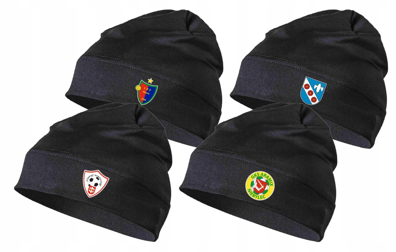 Czapka termoaktywna z herbem klubu. Idealna dla drużyn sportowych: dla piłkarzy, do biegania, na narty, wyprawy w góry, jazdę na rowerze, wędkarstwo itp.