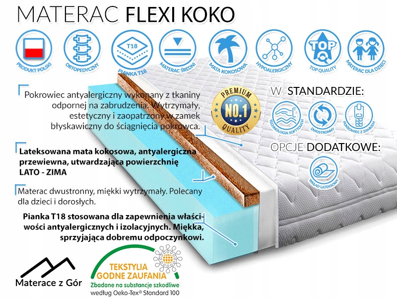 INFOGRAFIKA UWAGA: zalecamy sprawdzenie, czy którykolwiek komponent materaca nie jest czynnikiem alergennym dla użytkownika.