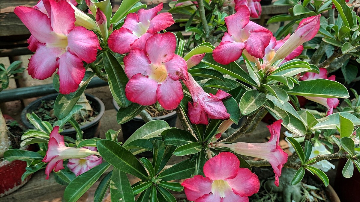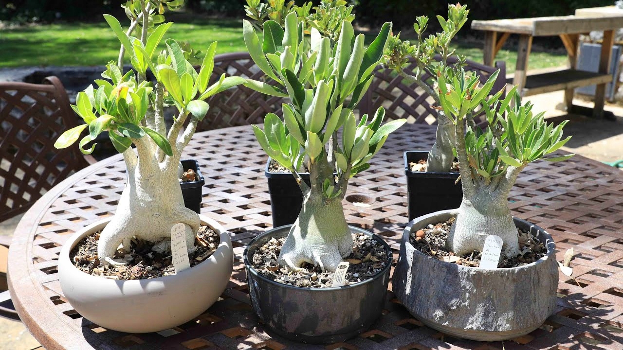 Bonsai Róża pustyni - wyglądem przypomina mini baobab, który jest świetny do formowania, dodatkowo w okresie kwiecień - wrzesień obsypuje koronę masą różowych kwiatów. Adenium jest wyjątkowym sukulentem o grubym, gromadzącym wodę pniu. W stanie dzikim można go znaleźć w krajach Afryki. Elementem dekoracyjnym jest efektywny pokrój (kształt) rośliny, oraz przepiękne pomarańczowo czerwone kwiaty. Są proste w uprawie i doskonale nadają się na zajęcie wyeksponowanego, miejsca w domu.