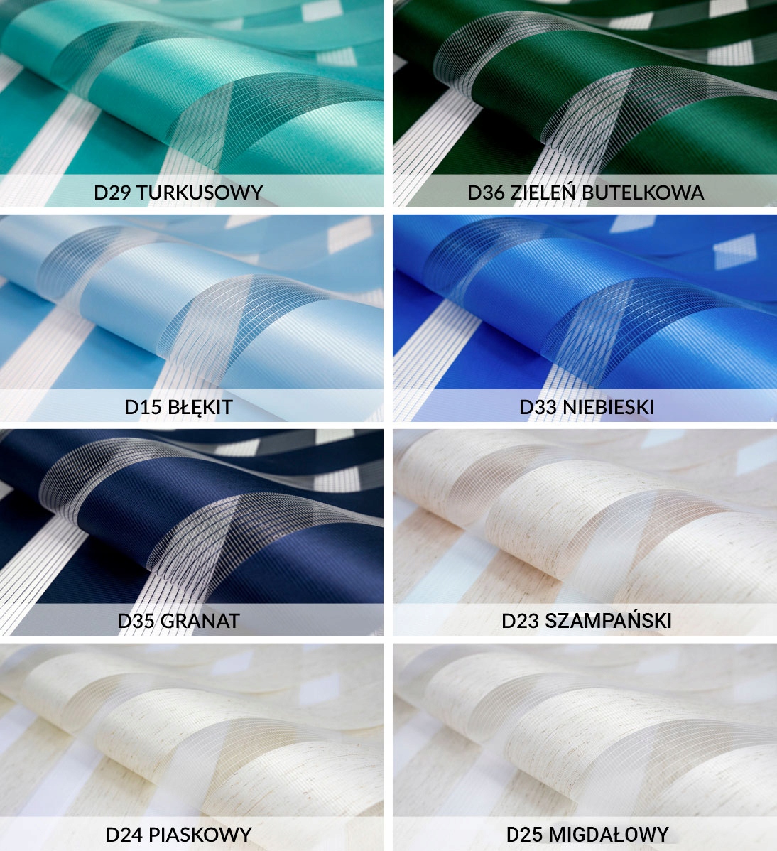 Poniżej aukcji znajdziesz największy wybór kolorów tkanin do rolet Dzień i Noc Sun