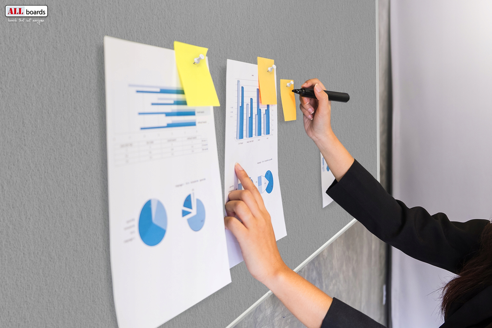 Tablica tekstylna firmy ALLBoards jest funkcjonalna, a także posiada elegancki wygląd. Możesz używać ją w biurze do organizacji pracy, w domu do zawieszania notatek oraz zdjęć lub w dowolnym miejscu gdzie będzie ci potrzebna.