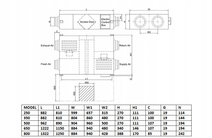 Główne cechy wentylatora z odzyskiem energii serii DMTH: