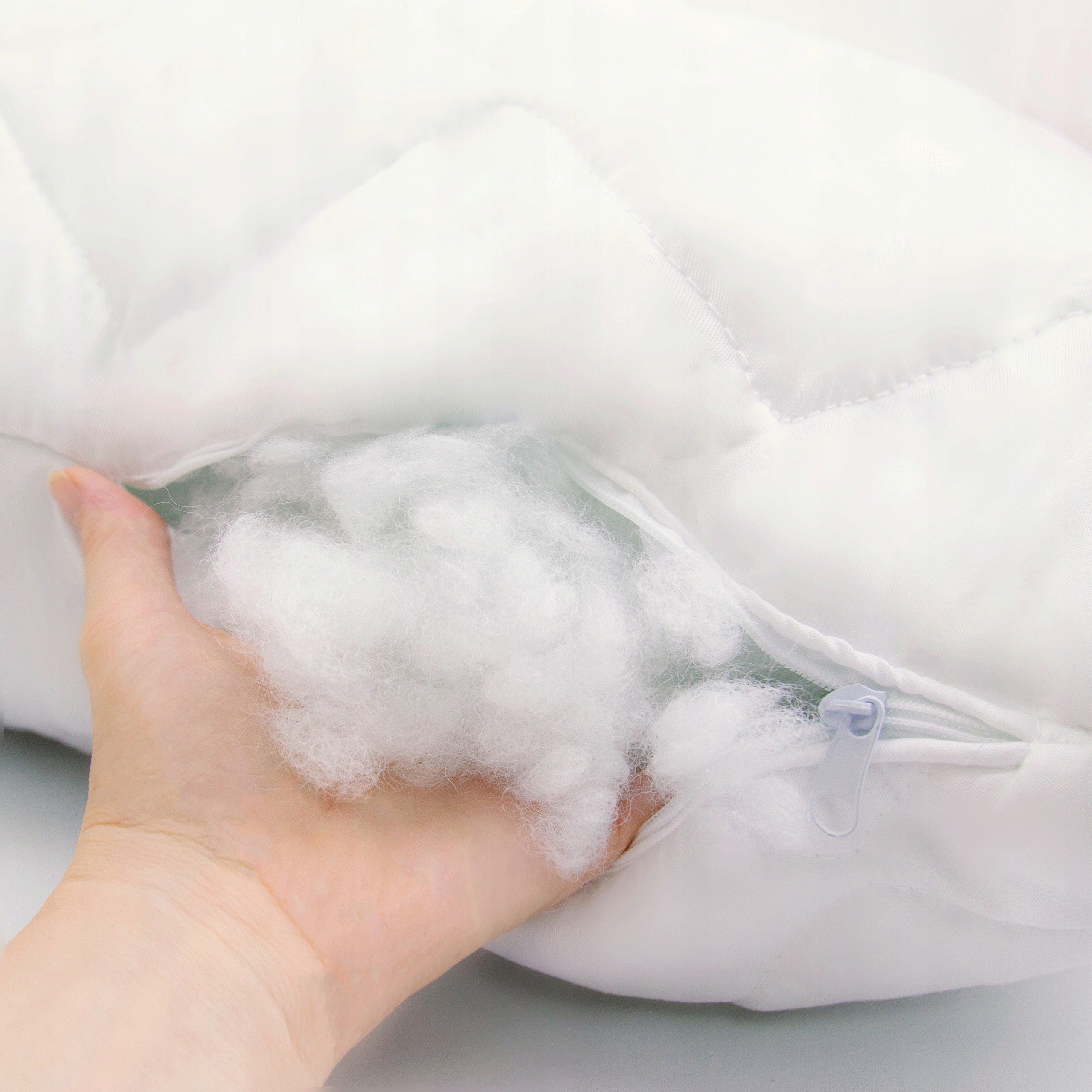Jeśli poduszka okaże się zbyt twarda w łatwy sposób dzięki wszytemu ergonomicznemu zamkowi, będą mogli Państwo usunąć nadmiar wypełnienia, aż do uzyskania pożądanej miękkości.
