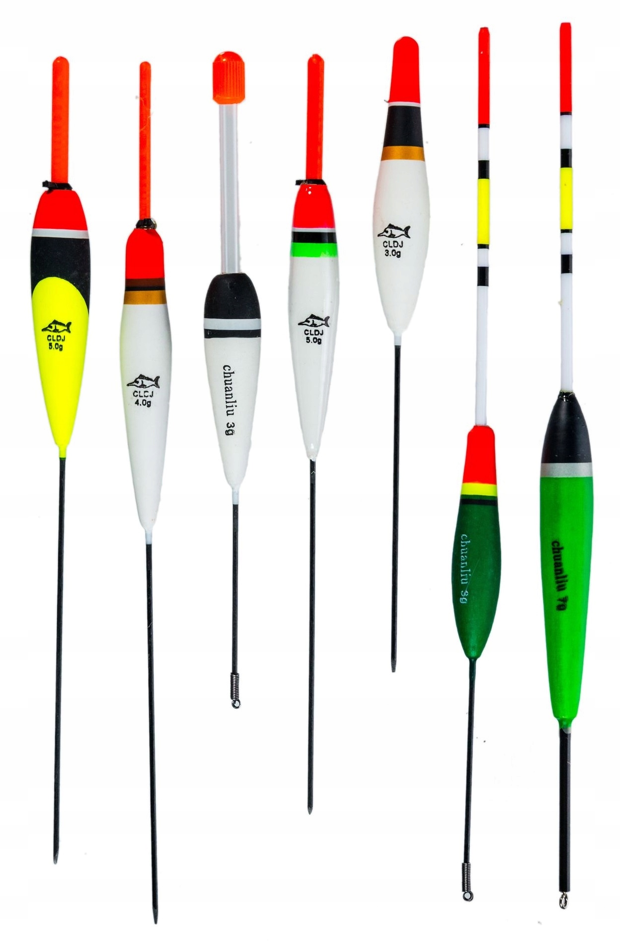 В комплект входят поплавки разного веса и длины от 2 до 7 я играю.