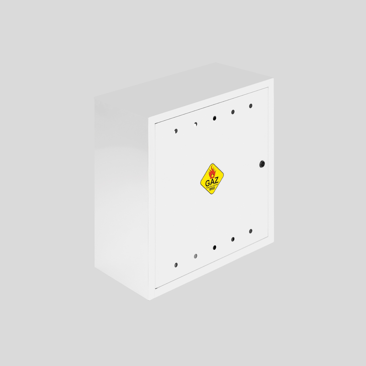 Szafki gazowe zostały w całości wykonane z blachy ocynkowanej o grubości 0,8mm/0,6mm. Dodatkowo pomalowana została proszkowo. Drzwiczki są zamykane na zamek cylindryczny z kluczykiem (jeden kluczyk dodatkowo)