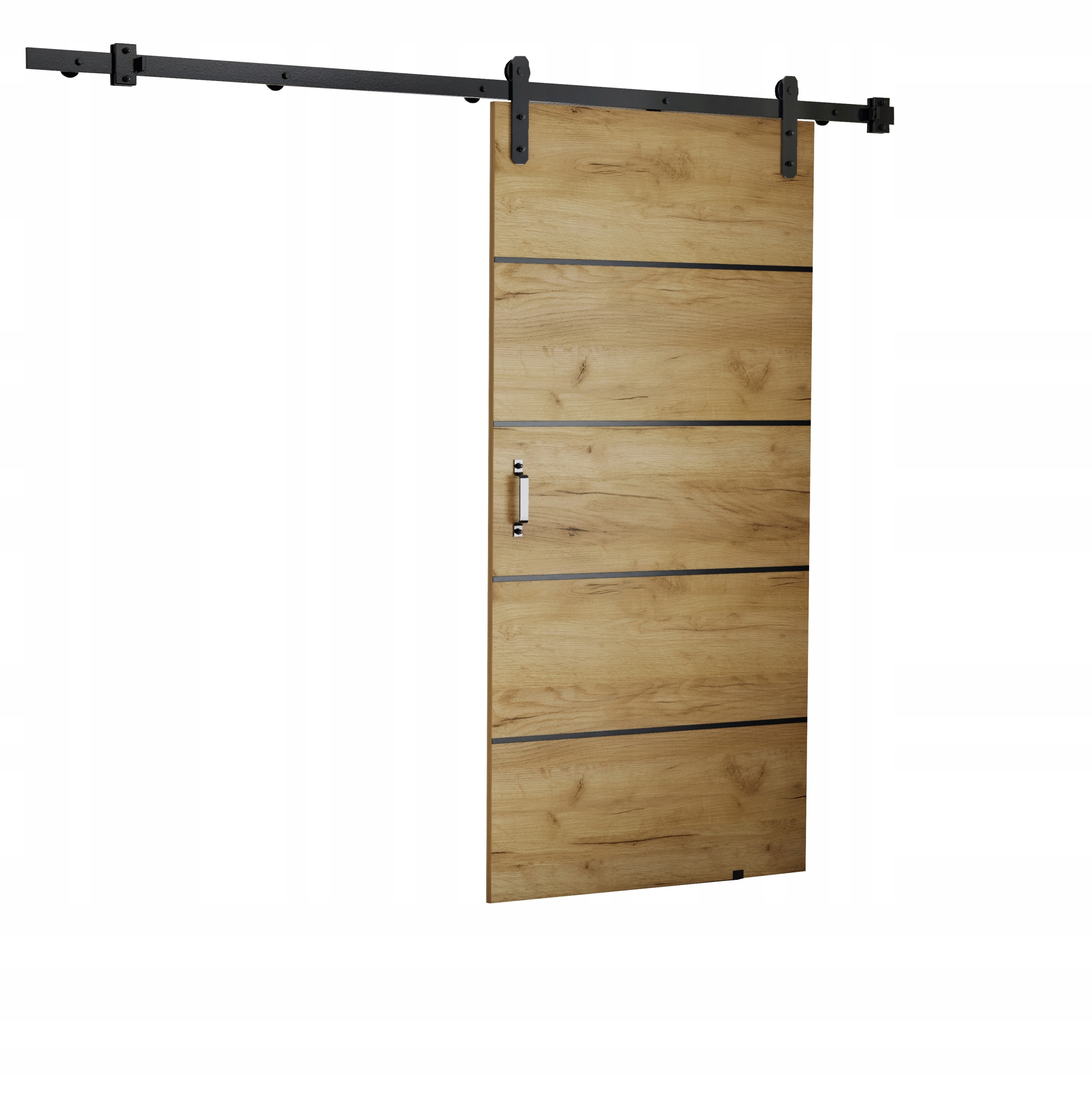Udźwig do 100 kg na skrzydło. Bezawaryjna eksploatacji przez długie lata. Szyna górna długości 2 m. W każdym zestawie dołączone są dopasowane kolorystycznie odbojniki górne i dolne do drzwi, co wpływa na zwiększenie stabilizacji i zapobiega wypadaniu skrzydła drzwiowego. Jest to system prosty w montażu, w którym można zamontować samodomykacz. Całość wykończona jest w pięknym surowym stylu industrialnym, w kolorze czarnego matu (malowanie proszkowe) TYLKO U NAS w gratisie otrzymujesz pasujący do drzwi uchwyt dwustronny.