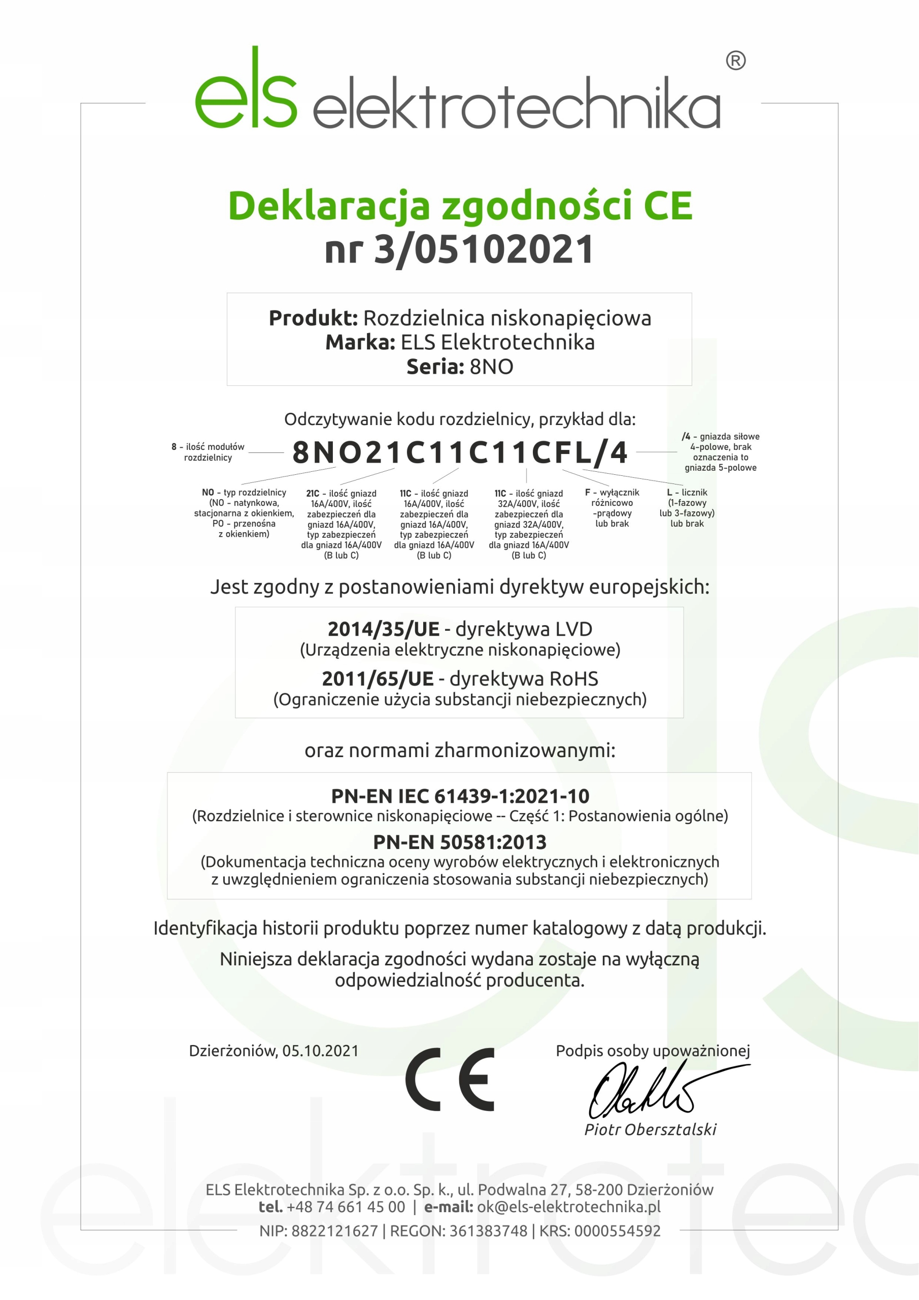 Распределительные устройства ELS Электротехника-это польский продукт, который создается со страстью, подкрепленной знаниями и опытом. Квалифицированный персонал специалистов собирает их вручную, с вниманием к деталям на основе компонентов от тщательно отобранных поставщиков. Каждое распределительное устройство, полученное от ELS Электротехника обозначается логотипом производителя.