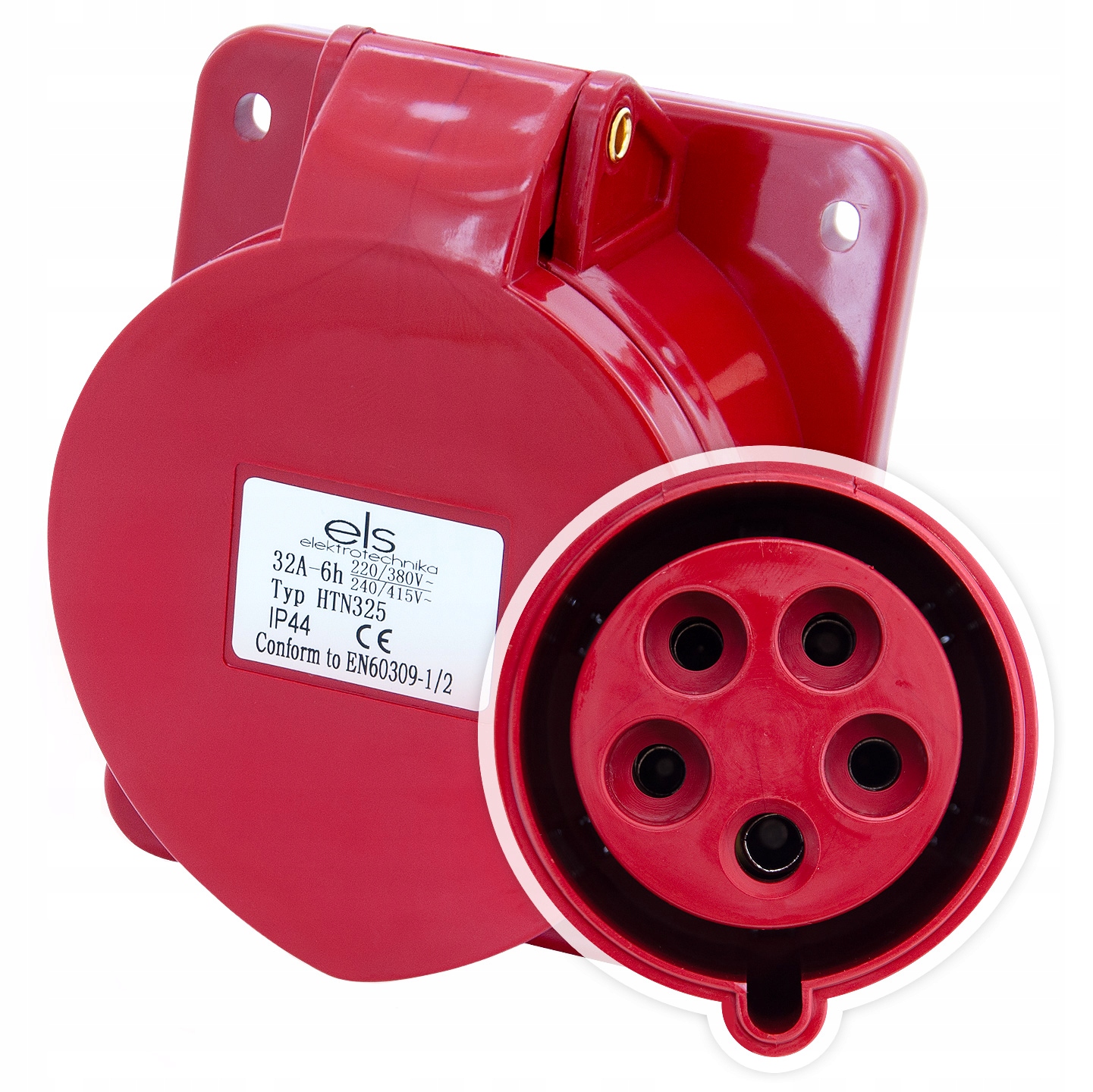 ✅ 1 x 32A 5P наклонная силовая розетка 400V Complete,