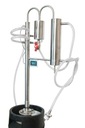 Przedmiotem tej aukcji jest nowoczesna Kolumna Rektyfikacyjna "Mini Zimne Palce" 60cm - dzięki zastosowaniu wypełnienia miedzianego, oraz dodatkowego chłodzenia, które powoduje trzykrotną destylację za jednym procesem produkt końcowy jest najwyższej jakości. Stabilność zapewnia regulowana podpórka, a dokładny pomiar otrzymujemy dzięki termometrowi elektronicznemu . Do zestawu jest dołączony komplet węży, złączek i uszczelek do podłączenia wody i szybkowaru lub innego posiadanego zbiornika (przykładowe podłączenie zdjęcie po prawej; dedykowana do zbiorników typu kana lub szybkowar do 30l)