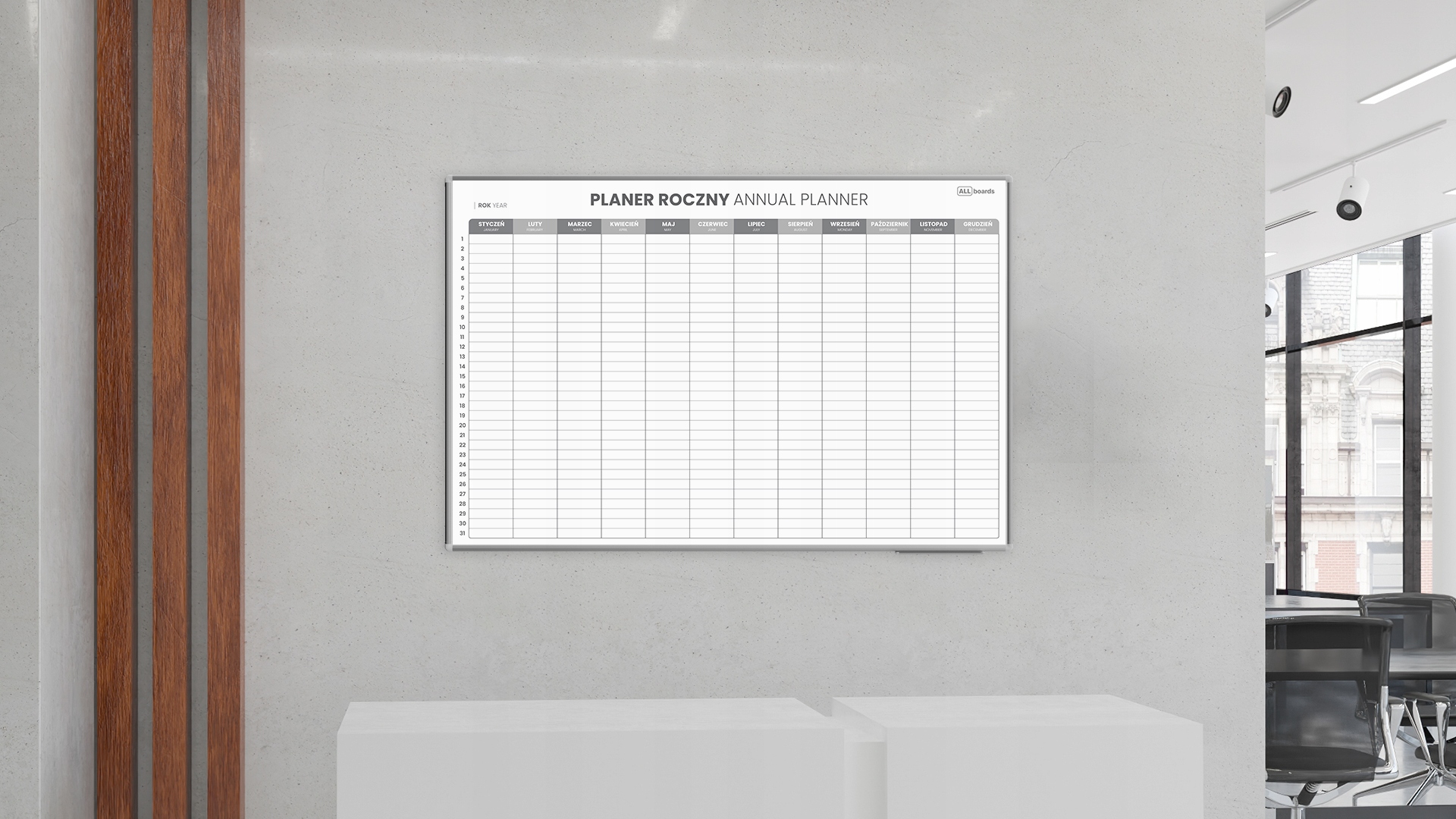 Powierzchnia z wysokiej jakości blachy posiada właściwości suchościeralne do pisania markerami oraz magnetyczne do przyczepiania informacji za pomocą magnesów.