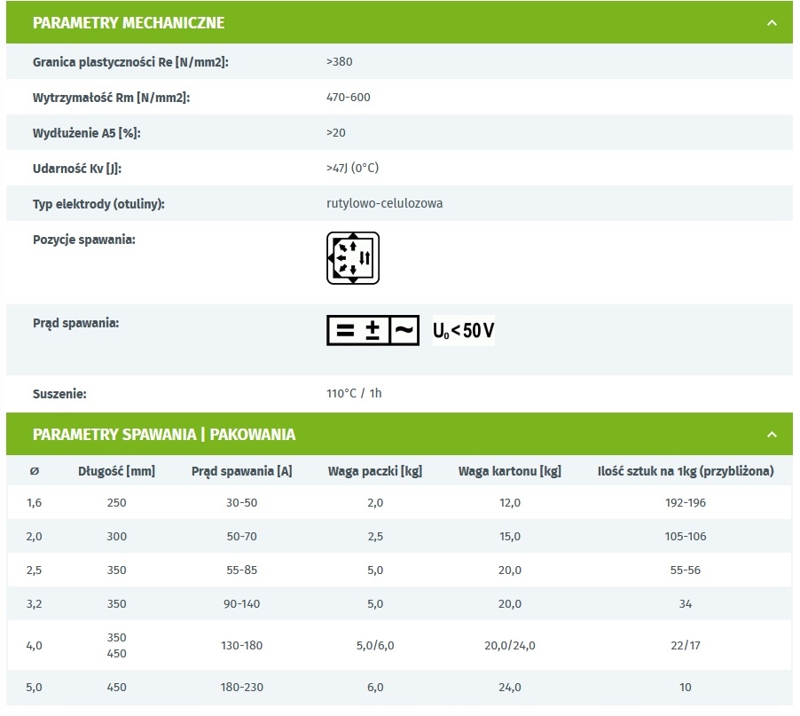 Średnio otulona elektroda rutylowo-celulozowa polecana do spawania we wszystkich pozycjach o przeznaczeniu montażowym i warsztatowym.