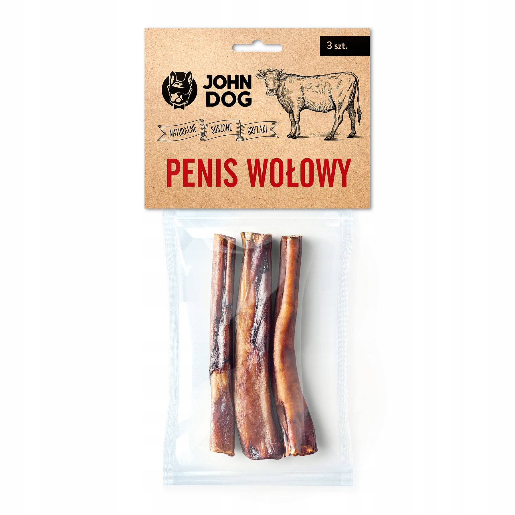 Торговое название John Dog - Gryzak naturalny - PENIS WOŁOWY - 3 szt