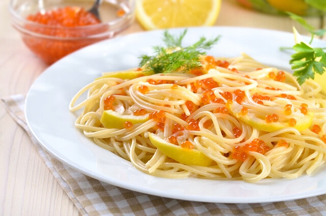 Икра подается охлажденным на хлебе, blinach, блинчики или яйца. Лучший дополнением к красной икры является сухое белое вино.