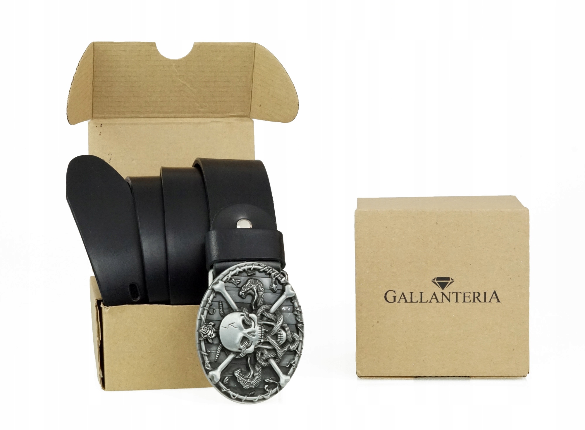 Czarny pasek to połączenie stylu elegancji i swobody w którym odnajdzie się zarówno płeć męska jak żeńska. Pasek posiada piękną metalową klamrę z motywem czaszki otoczonej wężami co dodaje mu oryginalności i niepowtarzalności wzoru. Idealny dla fanów dwóch kółek.