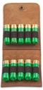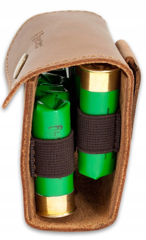 Wykonane ze skóry typu pull-up etui, na 10 szt. amunicji śrutowej. Elastyczne fałdy umożliwiają przechowywanie amunicji o różnym kalibrze. Zapinane na zatrzask. Posiada możliwość zamocowania do paska.