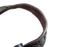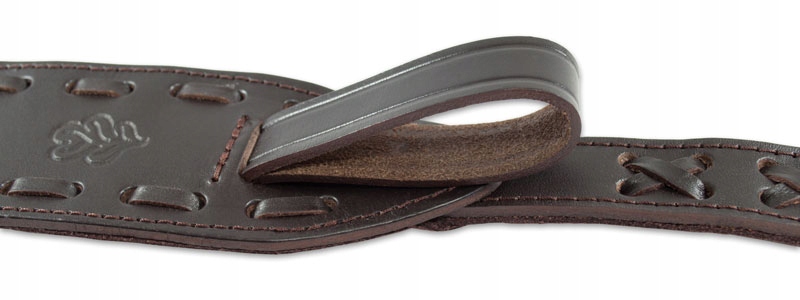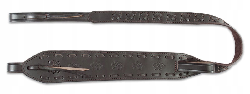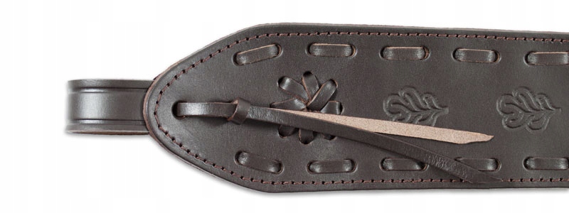 Pasek typu "kobra" wykonany z ciemno-brązowej skóry bukatowej. Ozdobiony tłoczonymi motywami liści dębu. Brak części metalowych - zapięcie na rzemyk. Podszyty brązowym welurem. Posiada specjalny uchwyt ułatwiający noszenie broni.