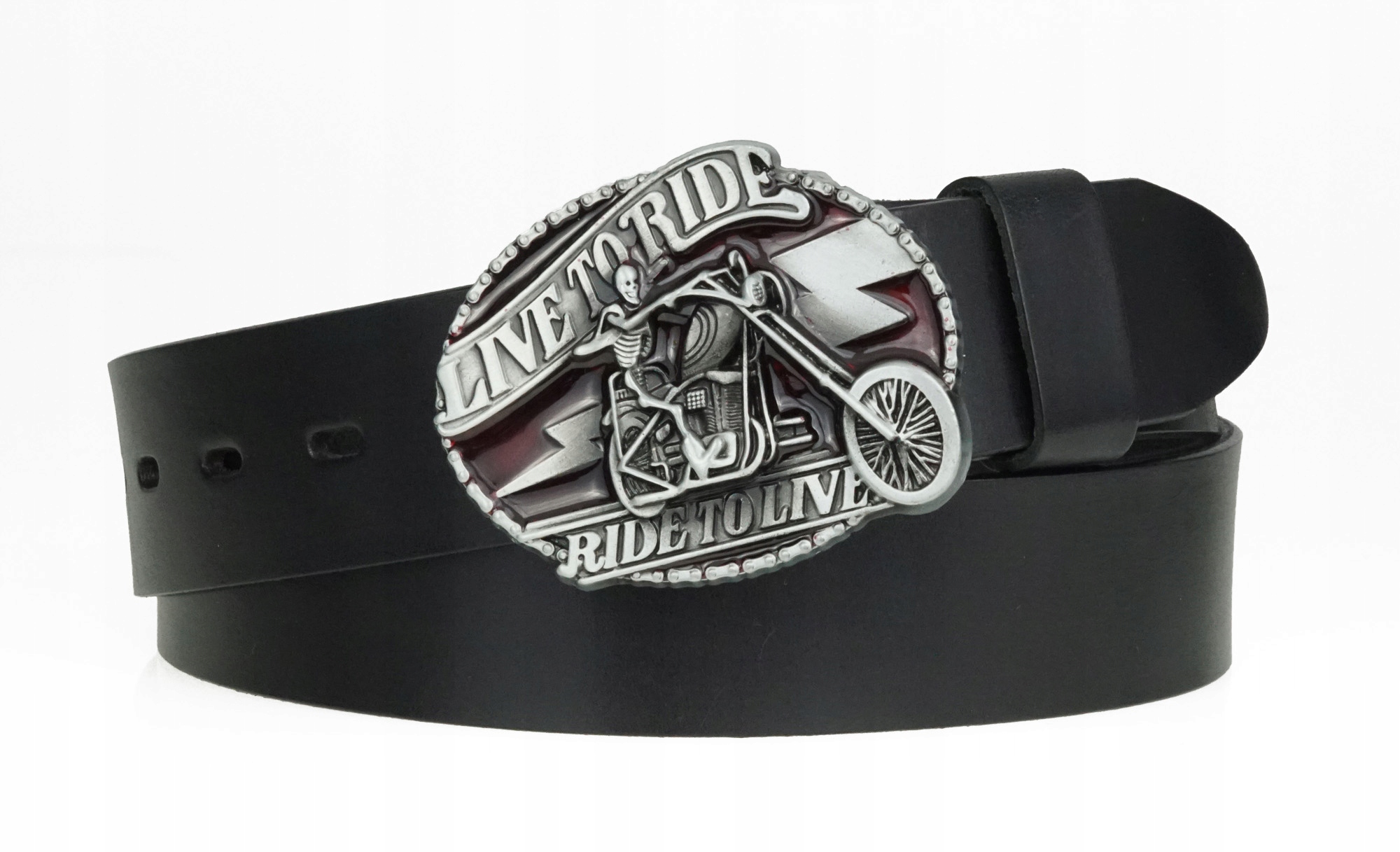 Czarny pasek to połączenie stylu elegancji i swobody w którym odnajdzie się zarówno płeć męska jak żeńska. Pasek posiada piękną metalową klamrę z motywem Live to ride co dodaje mu oryginalności i niepowtarzalności wzoru. Idealny dla fanów dwóch kółek.