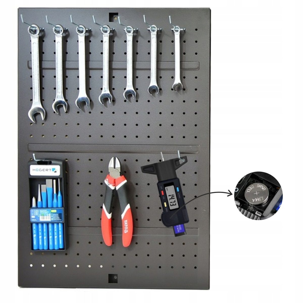 Miernik posiada wygodny uchwyt dzięki któremu można zawiesić go na tablicy warsztatowej dzięki czemu miernik zawsze będzie na swoim miejscu dostępny na wyciągnięcie ręki.