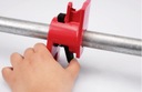Składa się z dwóch elementów: dociskowej końcówki ze śrubą oraz blokującej bariery.