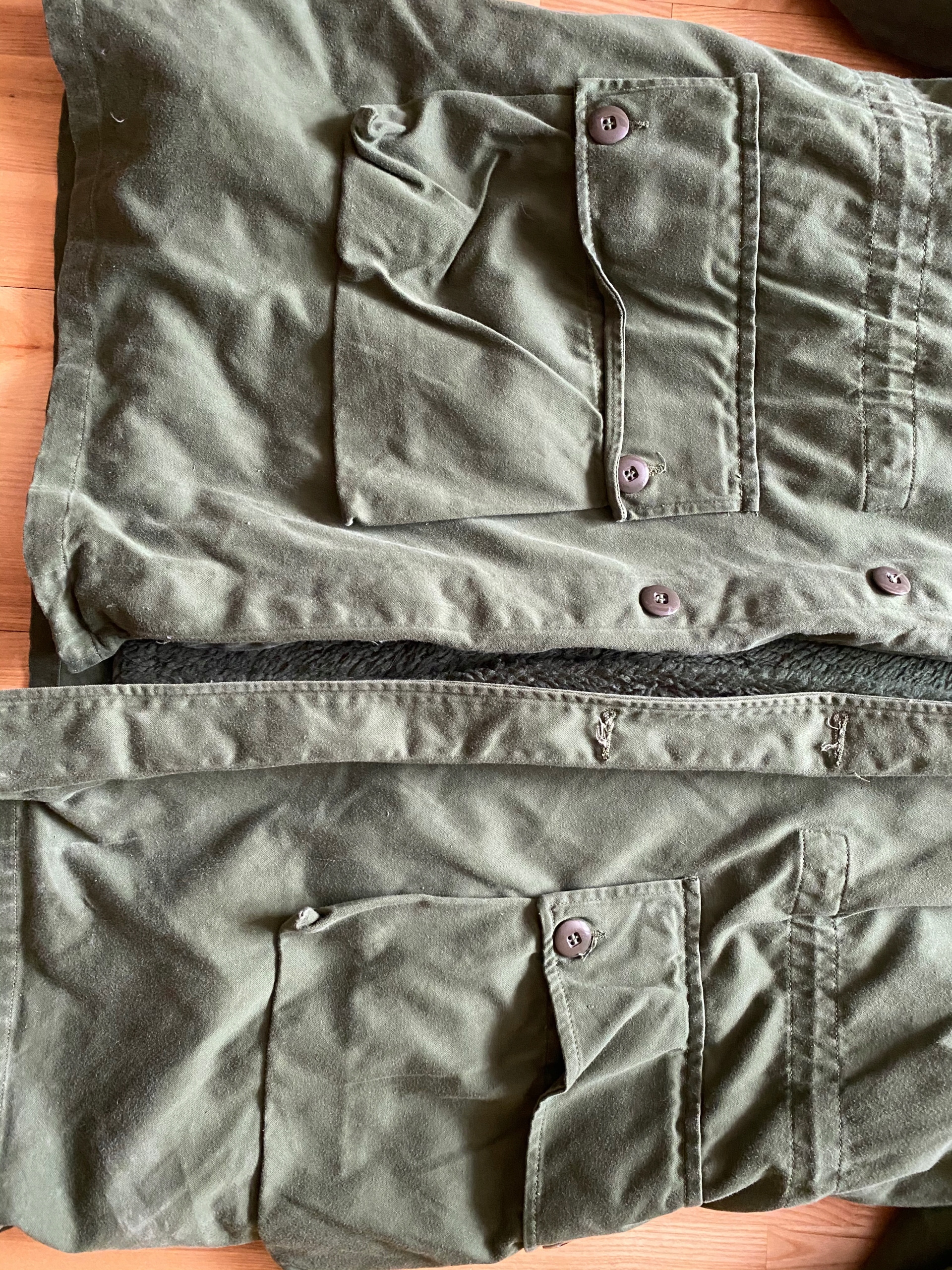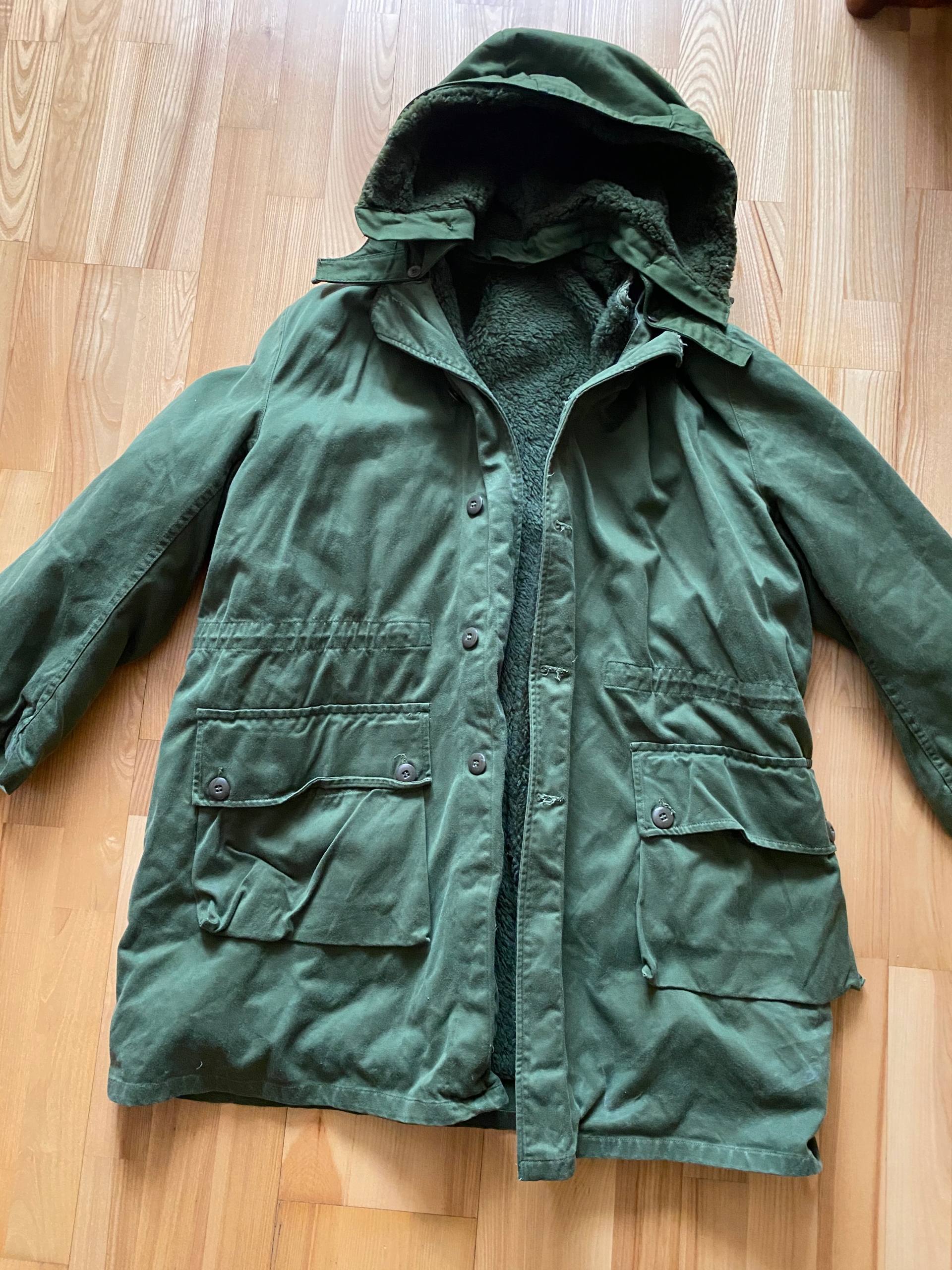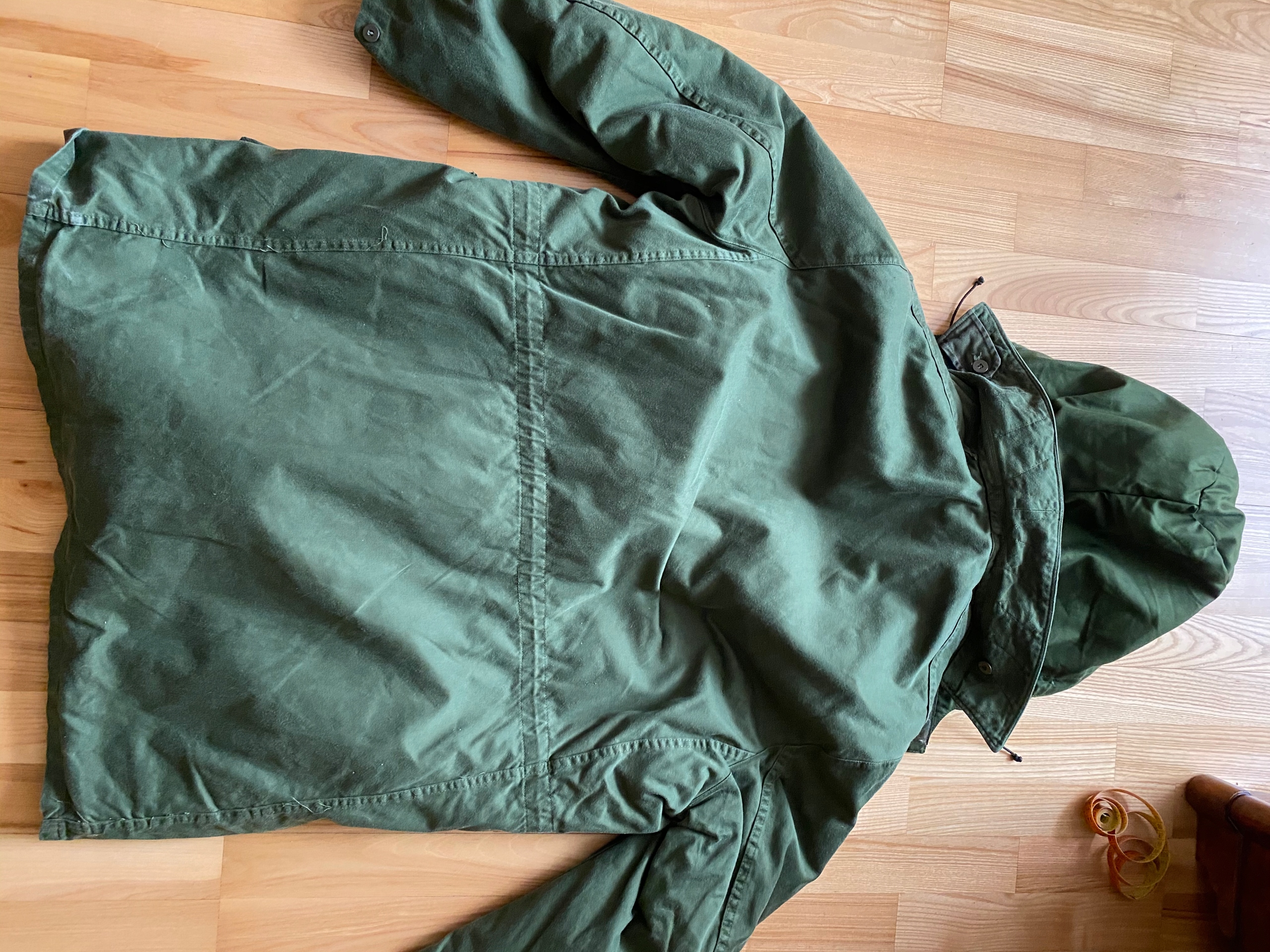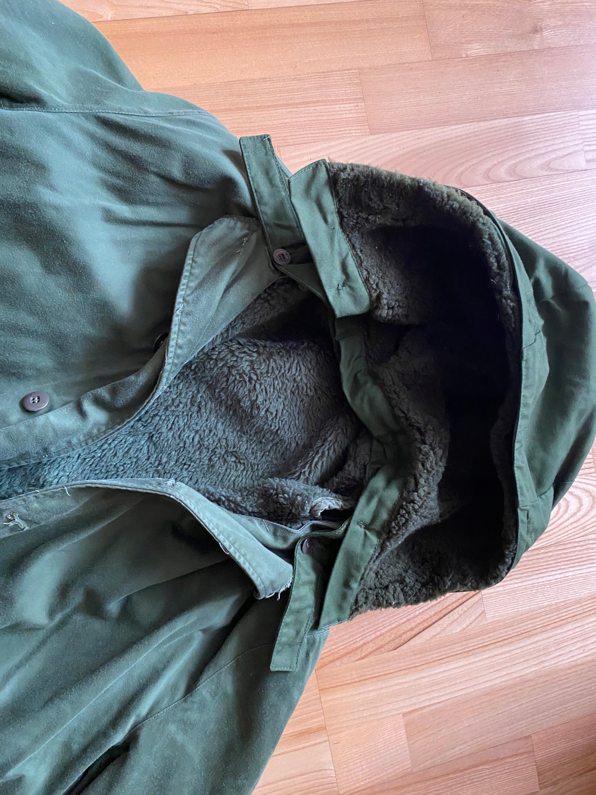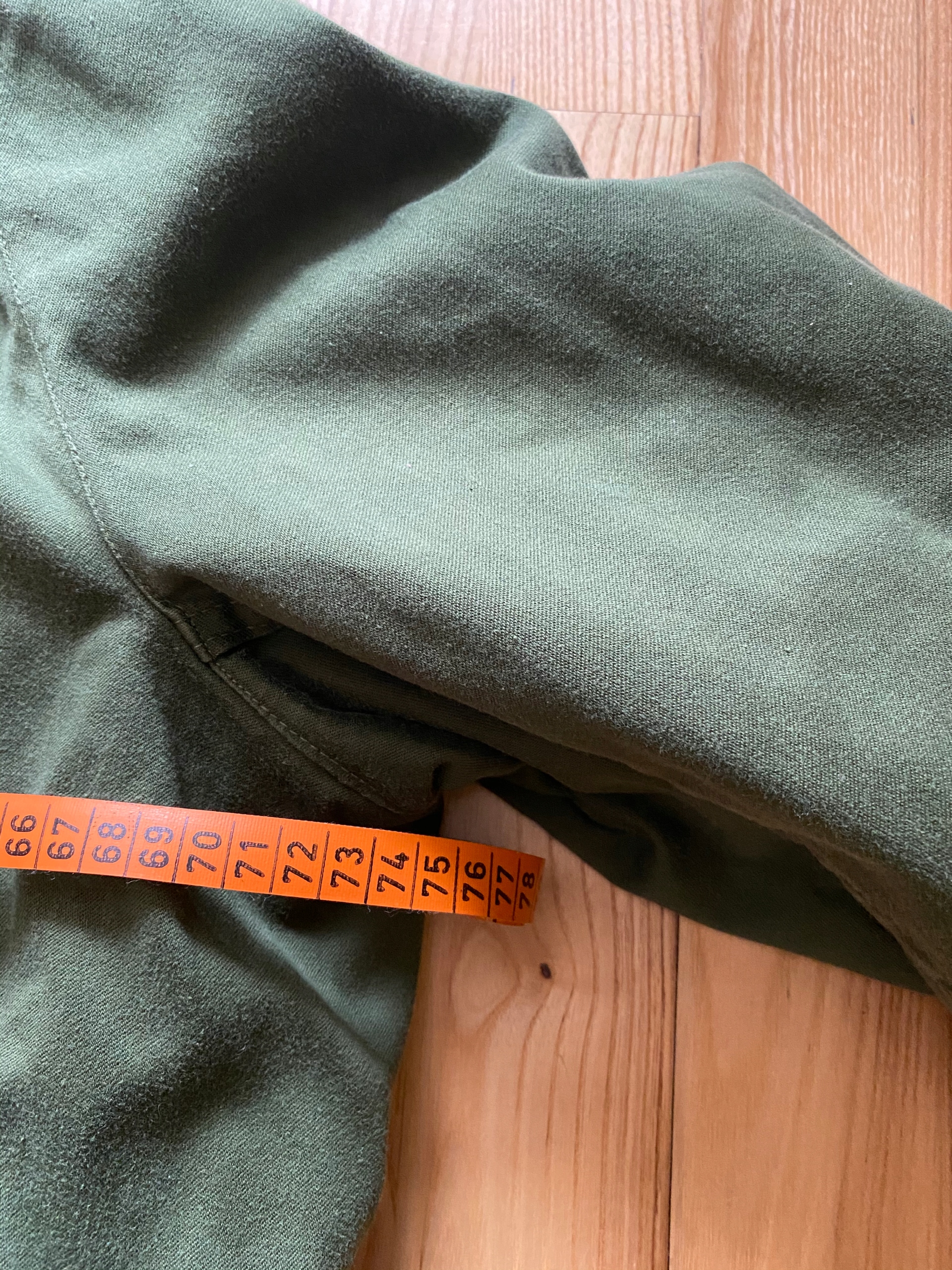 Stan bez wad - podpinka odpinana bardzo ciepła- kolor zielony wojskowy- rękaw- od pachy 46 cm , a od szycia na barku 67,stosunkowo do całej kurtki owe rękawy nie są za długie