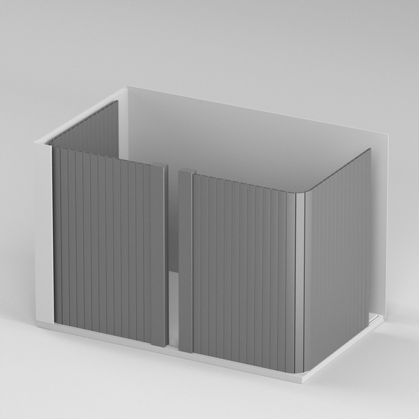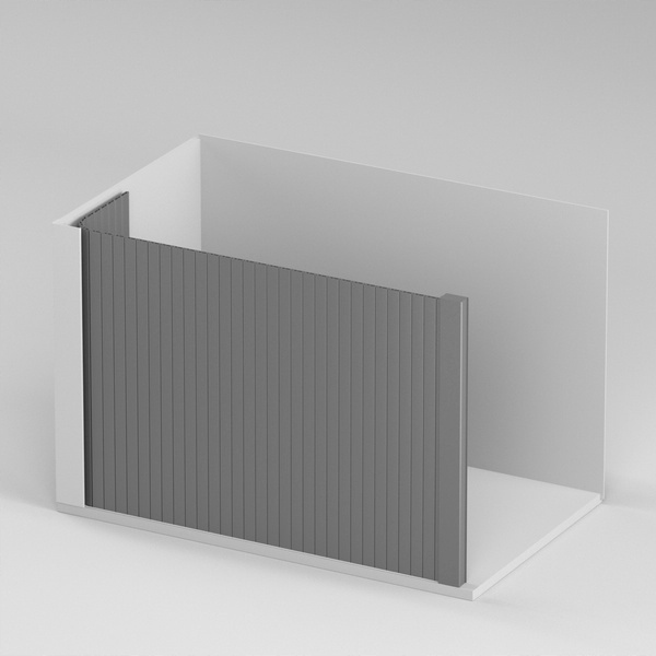 На этом аукционе мы предлагаем жалюзи с движением вертикальным задним с усилителем C6, на направляющих сверху, для шкафа с размерами внутренних: