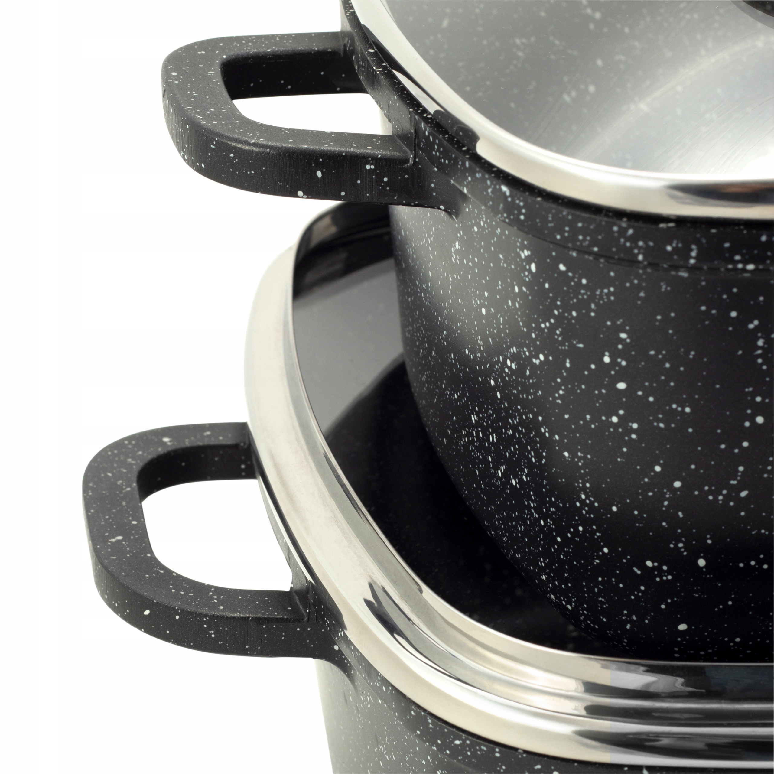 Горшки нагреваются равномерно, без образования горячих и холодных краев, даже в случаях приготовления пищи над небольшой горелкой. Это ограничивает время приготовления и в то же время снижает риск пригорания еда.