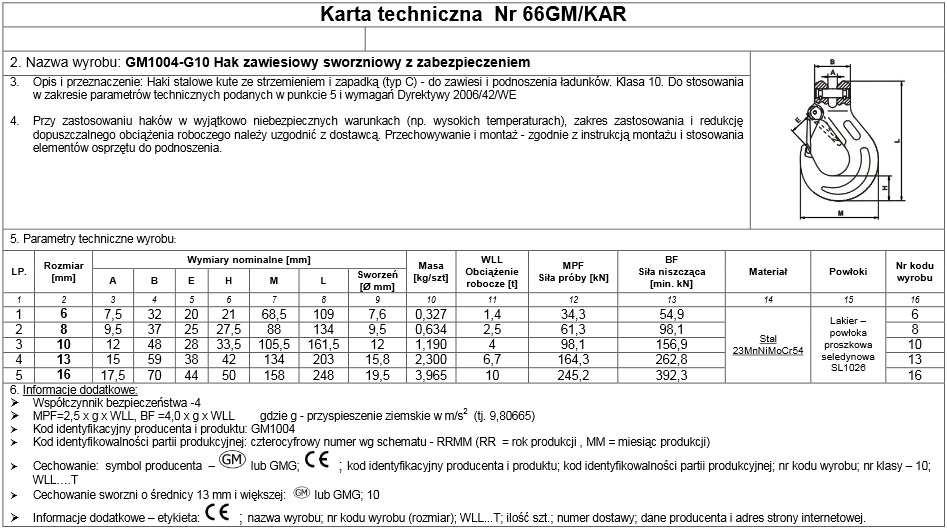 HAK ZAWIESIOWY SWORZNIOWY Z ZABEZPIECZENIEM 6 mm - 1 szt.