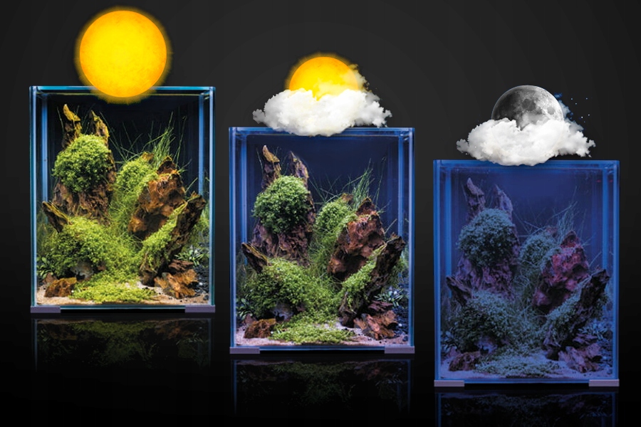 Существует возможность установки любой силы освещения. Если у вас много водорослей, вы можете установить свет только на 75%. Если пользователь предпочитает, чтобы свет вечером был более тусклым, большую часть дня устанавливает свет на 100%, а вечером в заранее установленное время свет тускнеет до 30%, а затем он постепенно падает до 0%. Нет ограничений для ваших идей!