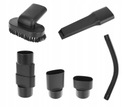 Do zestawu dołączono komplet końcówek tj.: szczotka, wąska nakładka szczelinowa oraz szeroka i elastyczna rurka.