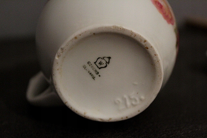 ART DECO, MLECZNIK, BIAŁA PORCELANA, RÓŻE SYG. CZECHY