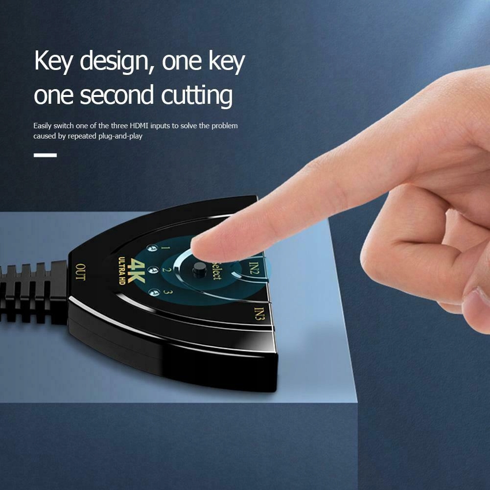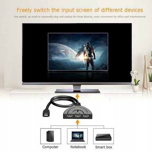 Ten przełącznik HDMI typu `` trzy w jednym '' może z łatwością przełączać trzy źródła sygnału na jeden wyświetlacz, a także ma funkcję przełącznika kluczykowego i inteligentną funkcję. Używanie wbudowanego na stałe kabla HDMI nie tylko przynosi korzyści, ale także oszczędza czas.