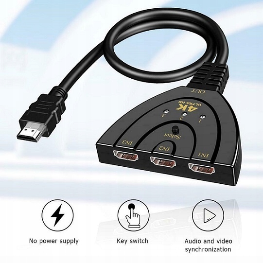 Rozdzielacz, switch HDMI na 3 porty HDMI 4K