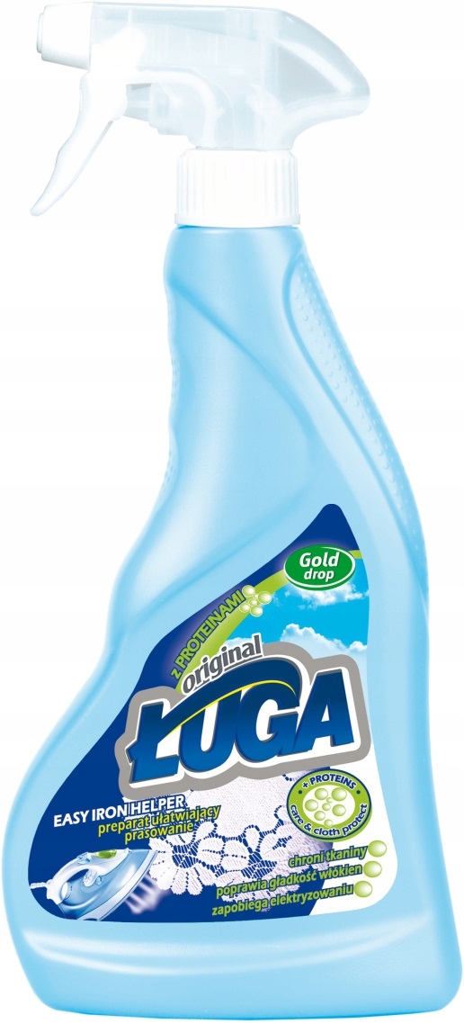 Ługa Preparat z proteinami to nowoczesny i niezawodny środek w płynie, ułatwiający prasowanie tkanin takich jak: koszule, obrusy, bluzki, bielizna, firanki.