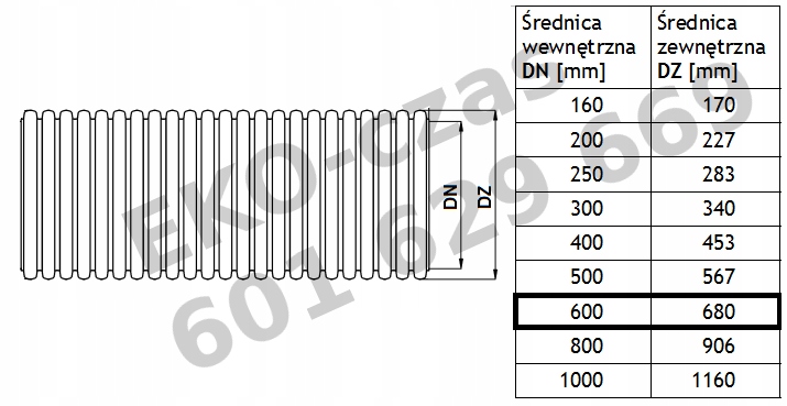 Rura trzonowa karbowana wykonana jest z polipropylenu (PP). Wykorzystywana jako element studzienki rewizyjnej. Duża średnica wewnętrzna (60 cm) zapewnia swobodny dostęp do odcinków kanalizacji lub drenażu.